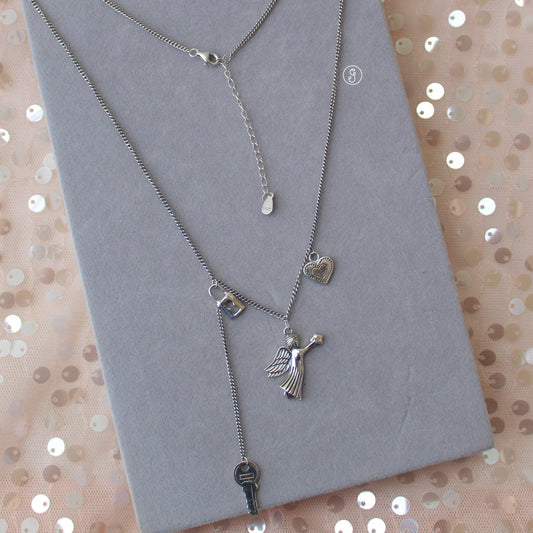92.5 Pure Silver Chain With Angel & Heart Charms
