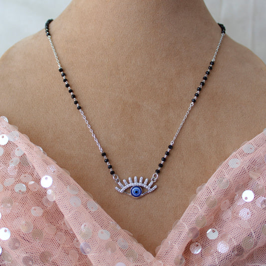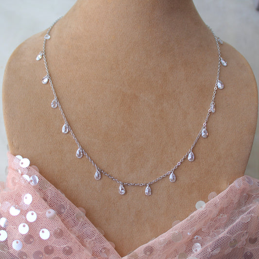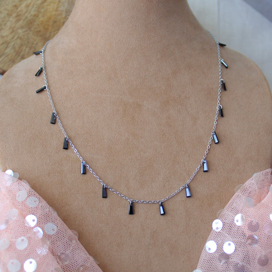92.5 Sterling Silver Chain With Black Crystal Charms