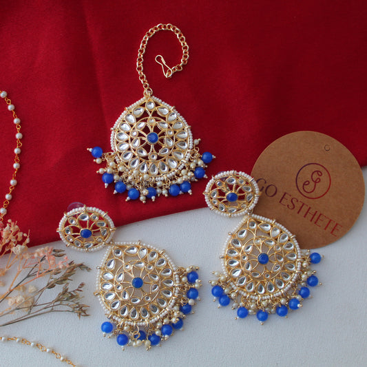 Baby Pink Mirror Work Earrings With Maang-Tika