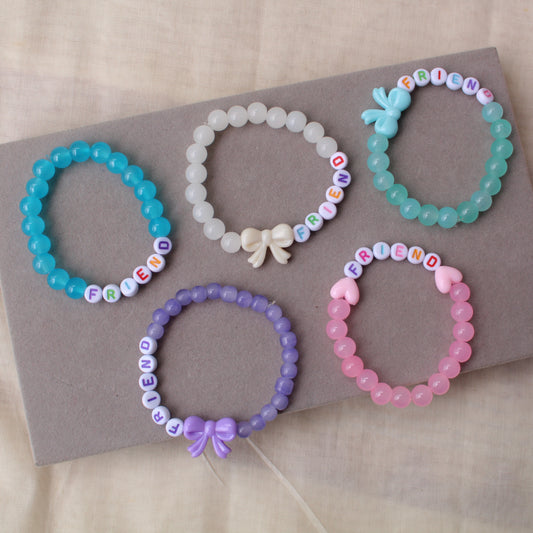 Cute Bow & Hearts Bracelet For Girls(set of 5)