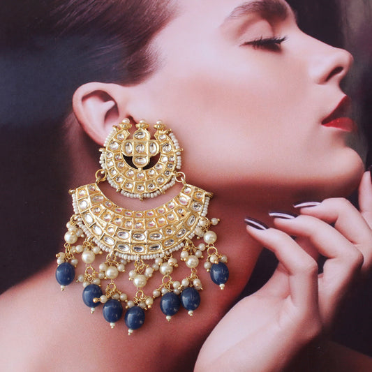 Blue Kundan & Beads Embellished Chandbali