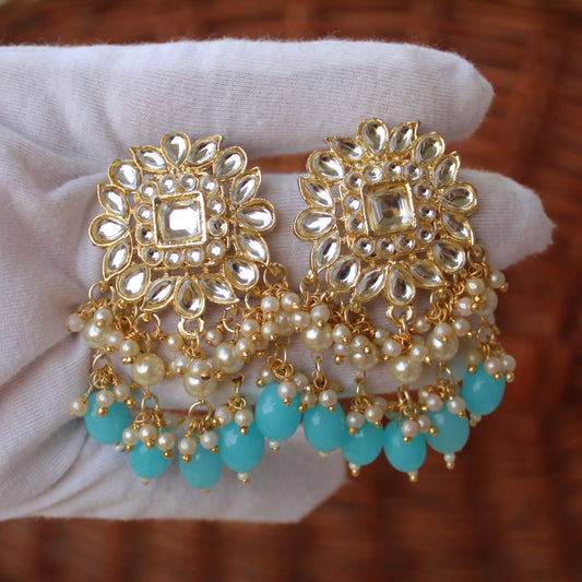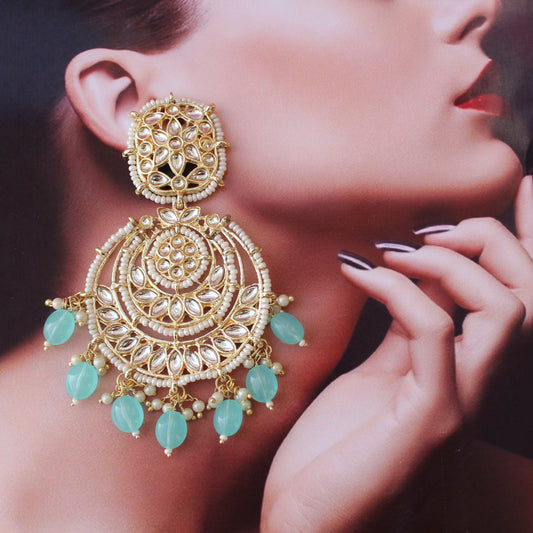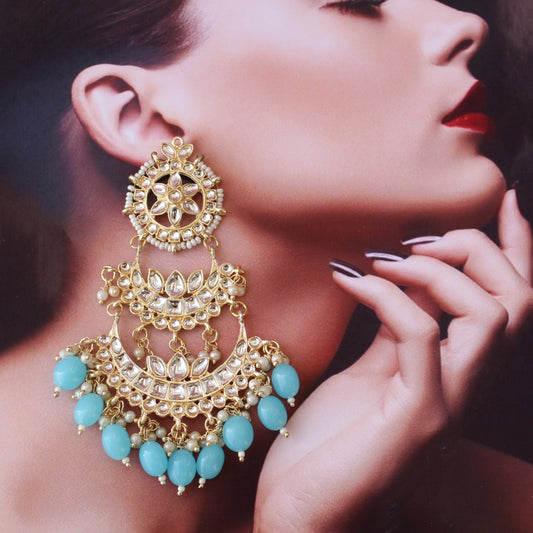 Teal Blue & Pink Kundan & Beads Work Chandbali