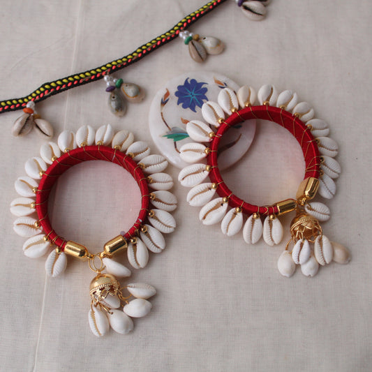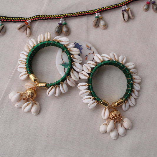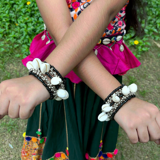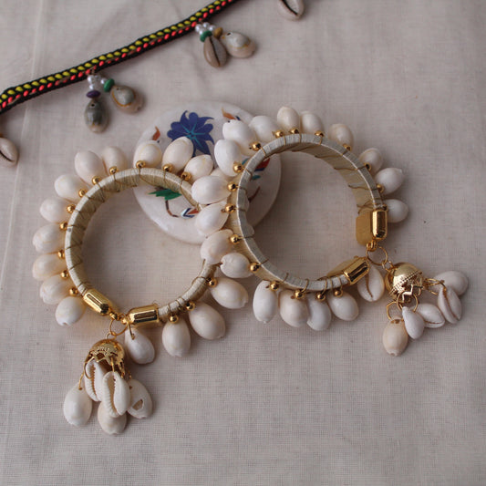 Triangle Shaped Gamthi Shells & Ghungroo Work Hand-Cuffs