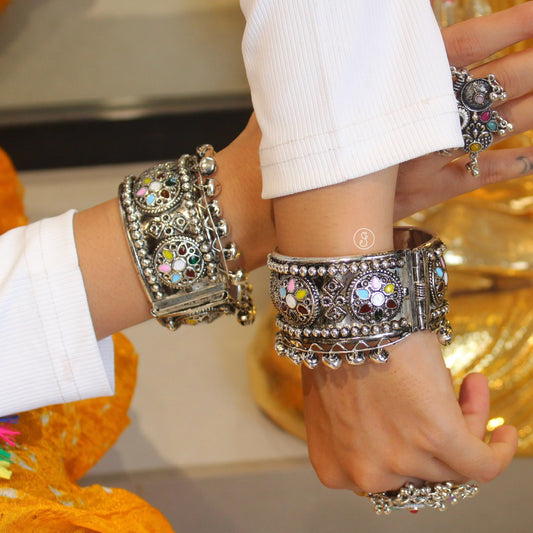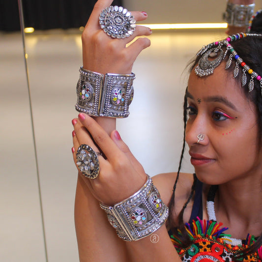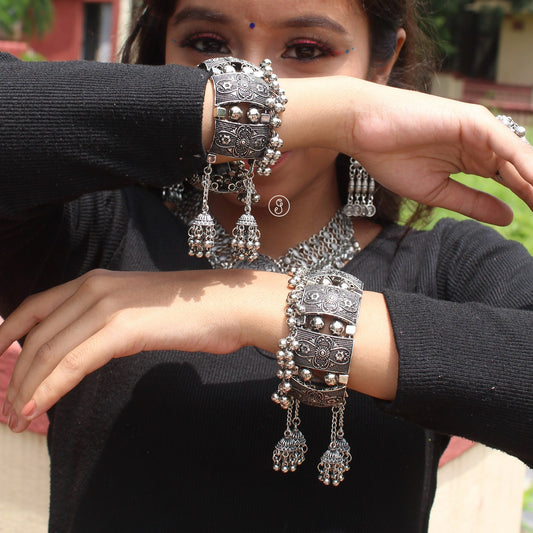 Stunning Oxidised Silver Broad Bracelet (Single)