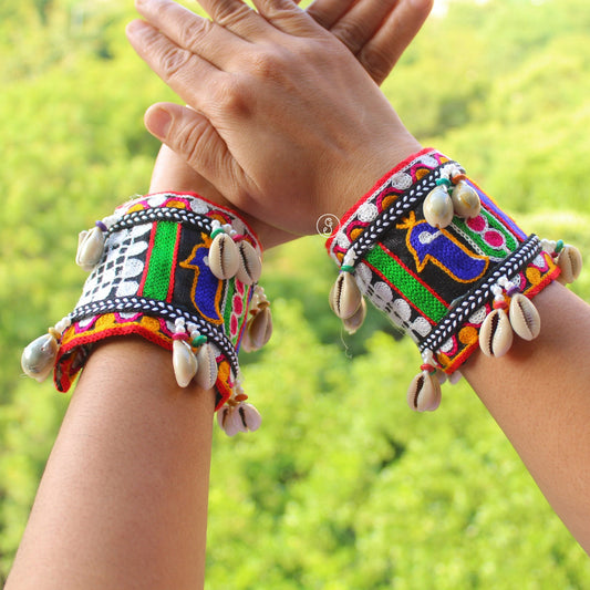 Multicolour Embroidered Shells Work Pair of Bracelets