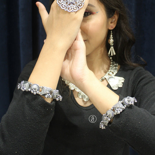 Oxidised Silver Set of Bangles (Size 2.6-2.8)