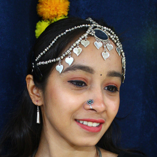 Multicolour Oxidised Silver Vibrant Maang Tika