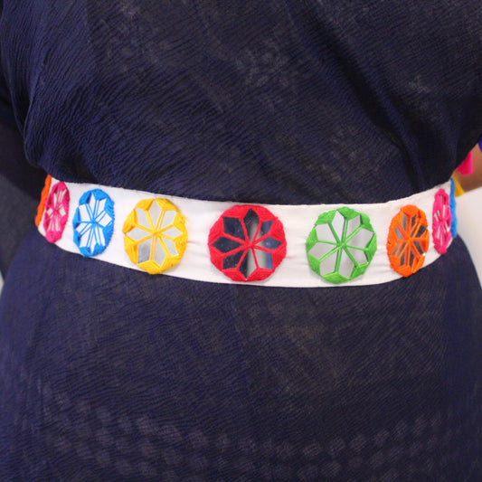 White & Multicolour Mirror Work Waist Belt