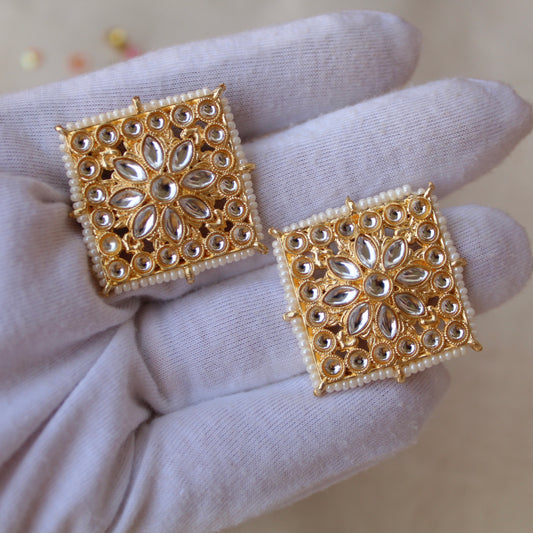 Stunning Square Shaped Golden Ethnic Studs