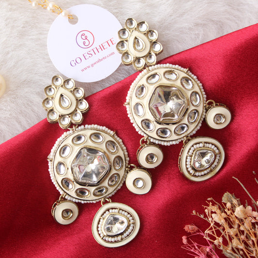 White Uncut Kundan Work Long Earrings