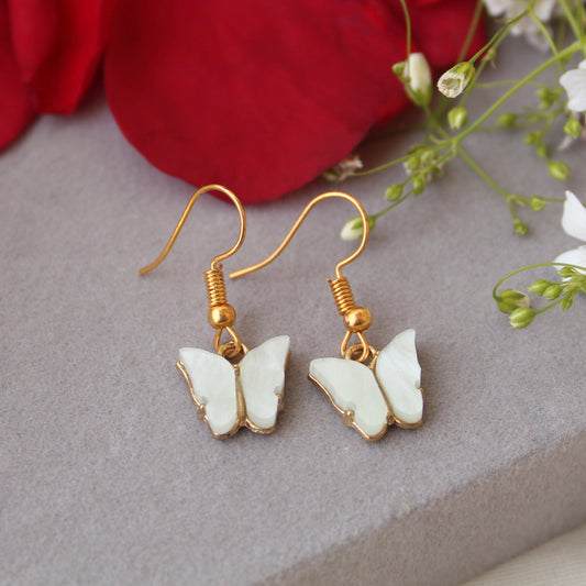 Elegant White Butterfly Charm Hook Earrings