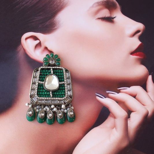 Premium Green Beads & Kundan Work Earrings