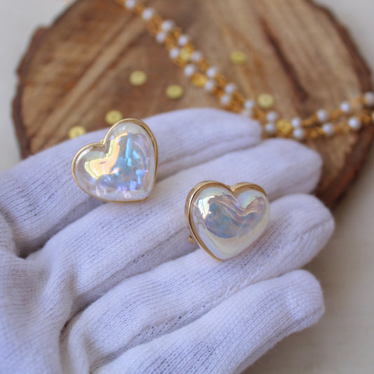 Rainbow Shine Heart Design Stud Earrings