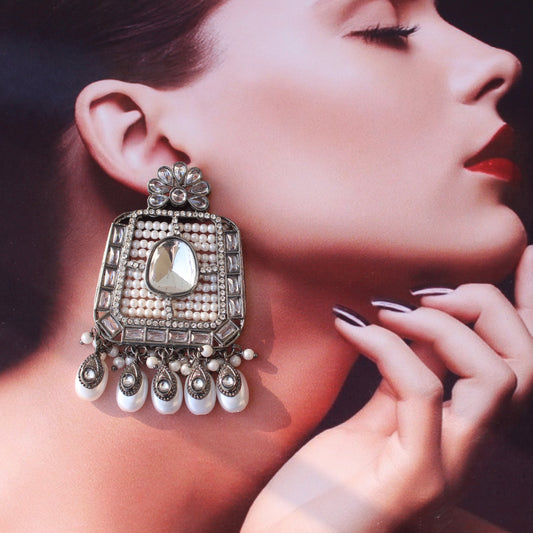 Designer White & Black Kundan & Beads Earrings