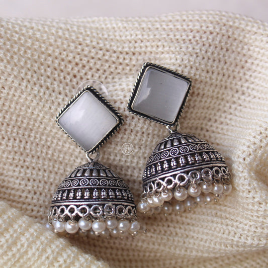 White Monalisa Stone Work Jhumki Earrings