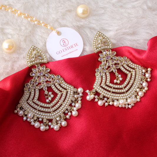 Pretty White Pearls & Stones Work Chandbali