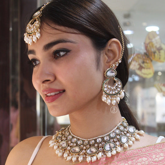 Stunning White Necklace Set With Tika