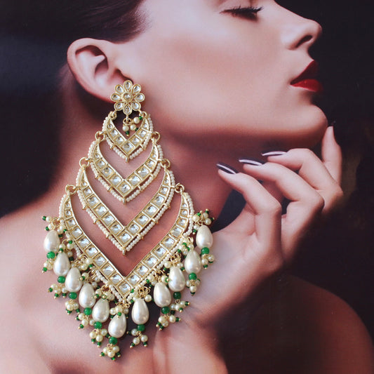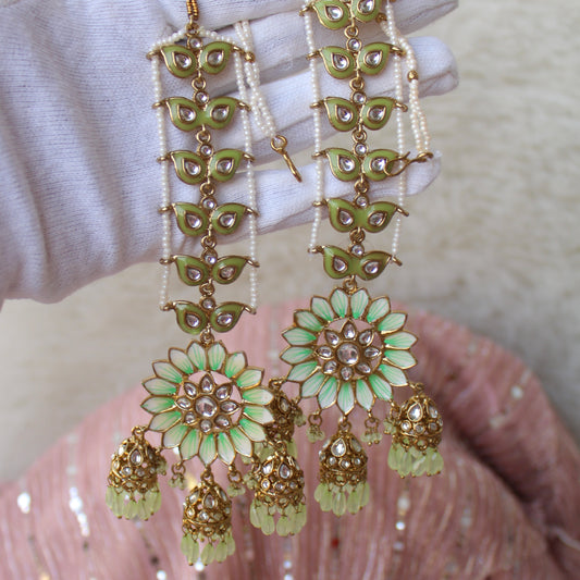 Gorgeous Green Ethnic Earrings With Earchain