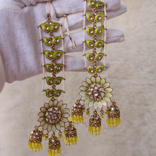 Lemon Green Floral Earrings With Earchains