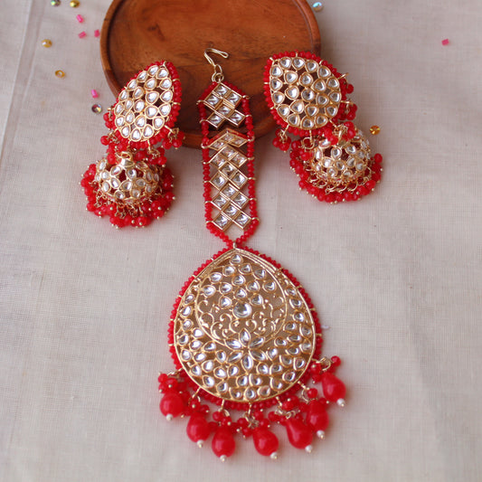 11 % OFFPremium Red Maangtika & Jhumki Set