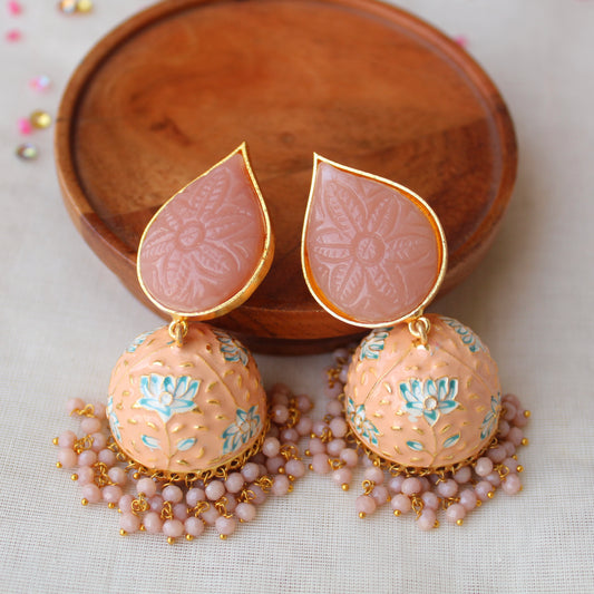Premium Peach Stones & Crystals Work Jhumki