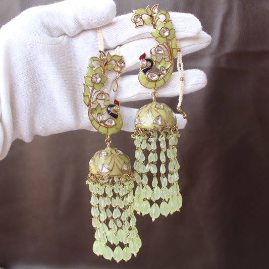 Premium Green Peacock Jhumki With Earcuff