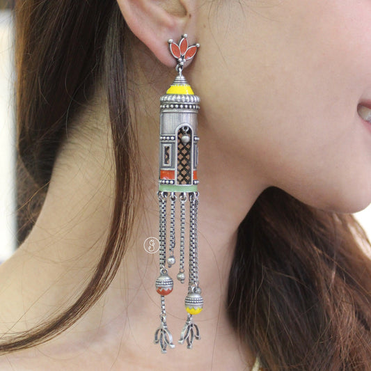 Classic Designer Oxidised Silver Long Earrings