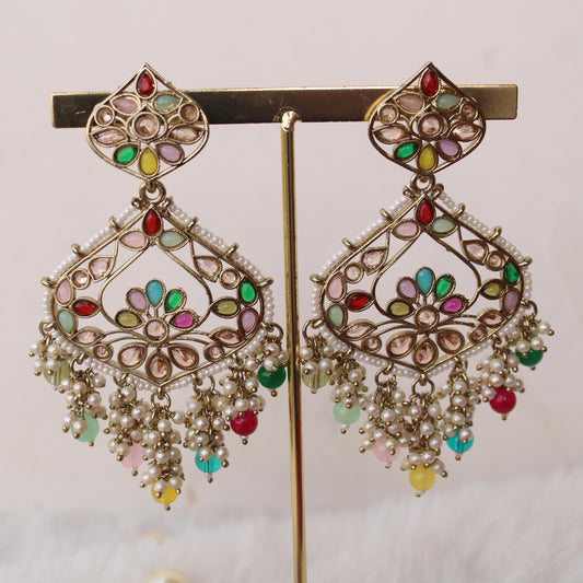 17 % OFFAqua Blue Kundan Work Long Earrings