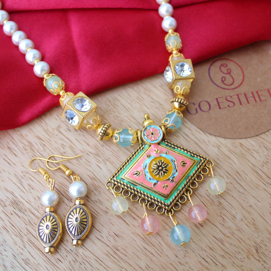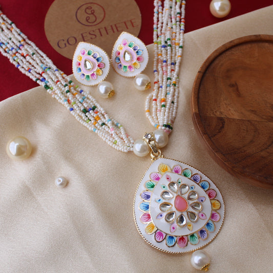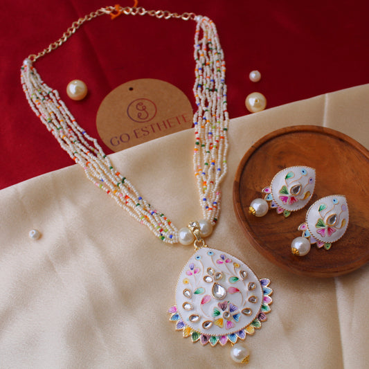Wonderful White Meenakari Necklace Set