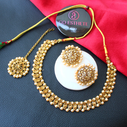 26 % OFFGolden Necklace Set With Maang Tika