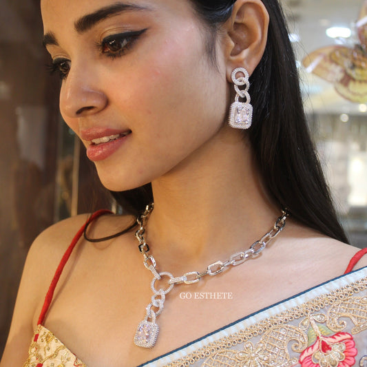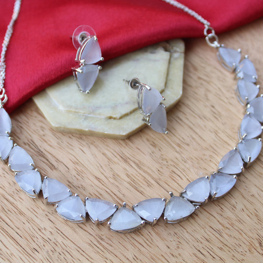 Grey CZ Diamonds Work Designer Necklace Set