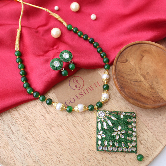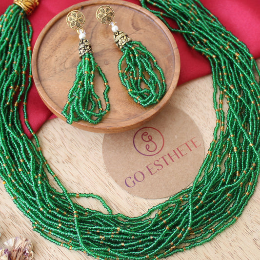 Green Multi-Strings Beads Work Necklace Set