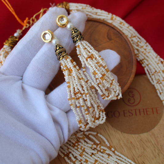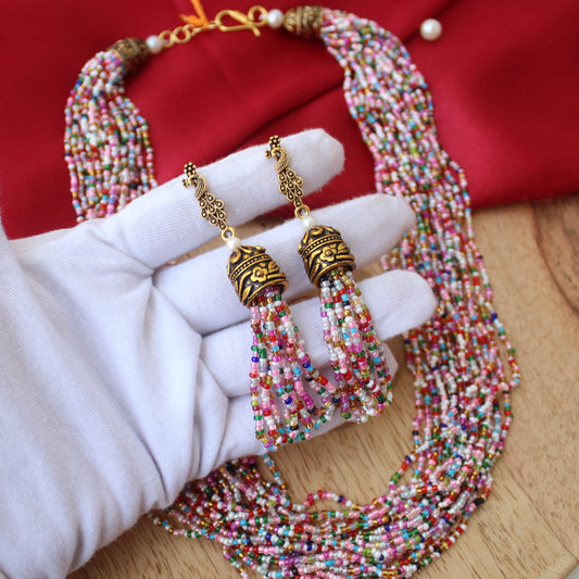 Multicolour Seed Beads Work Long Necklace Set