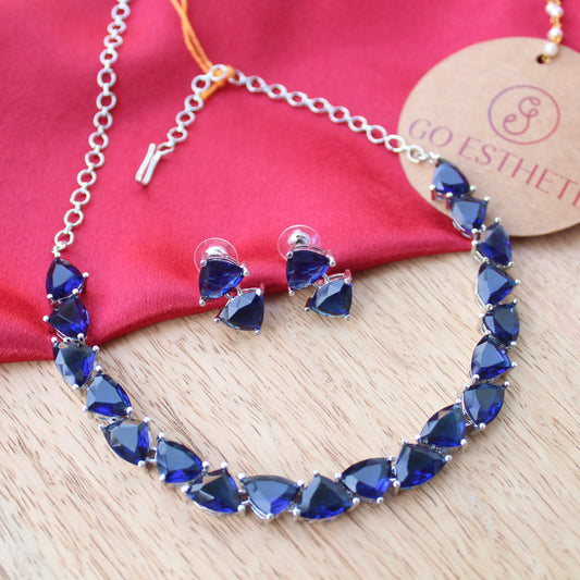 Navy Blue CZ Diamonds Designer Necklace Set