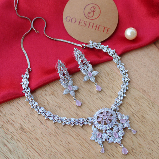 Pastel Pink CZ Diamonds Choker Necklace Set