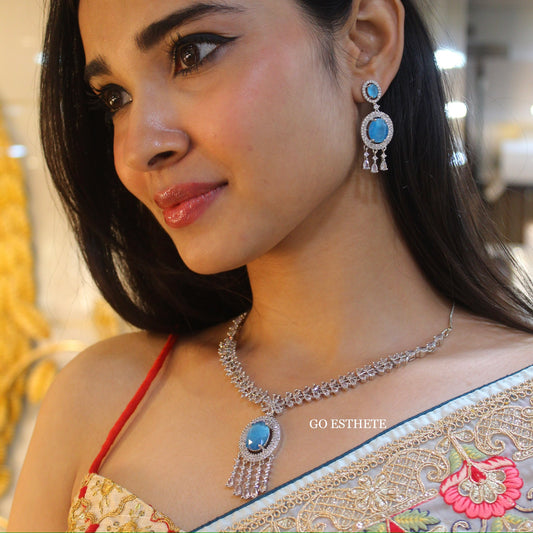 Sky Blue CZ Diamonds Designer Necklace Set