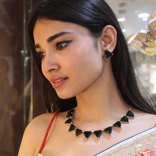 Ruby Stone & CZ Diamonds Work Necklace Set