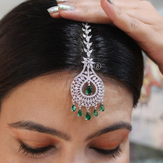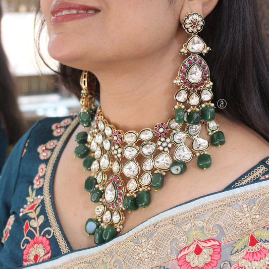 Luxurious Emerald Green Stone & CZ Diamonds Set