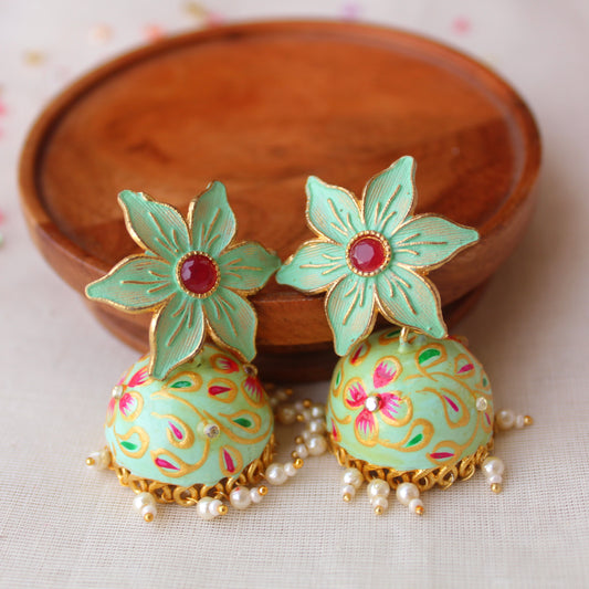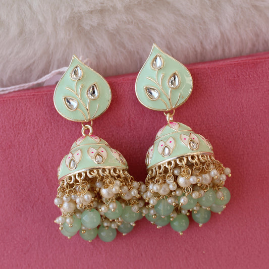 11 % OFFMint Green Meenakari Jhumki Earrings