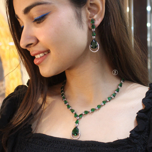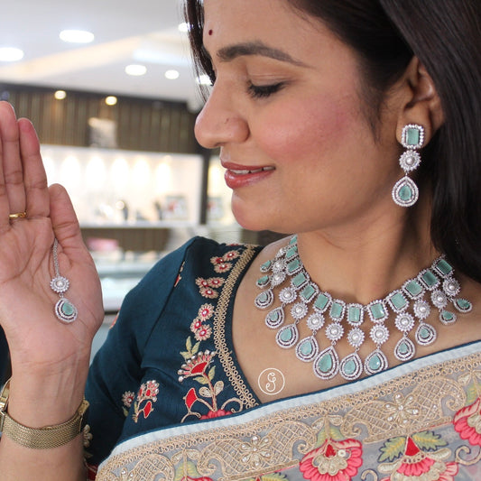 Silver CZ Diamonds Embellished Designer Necklace Set