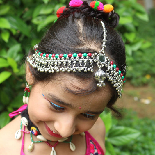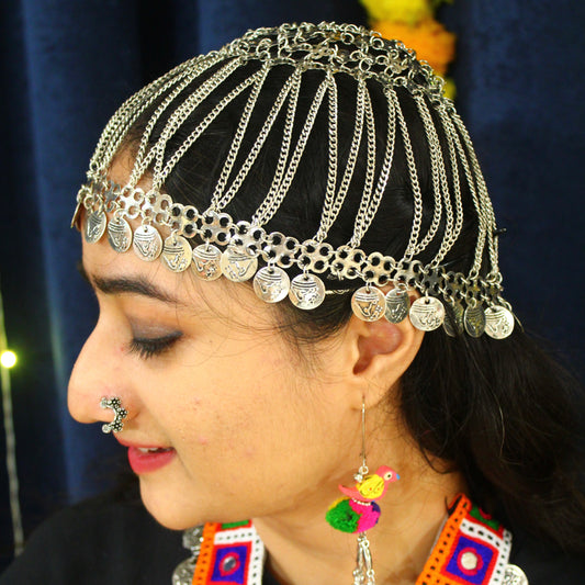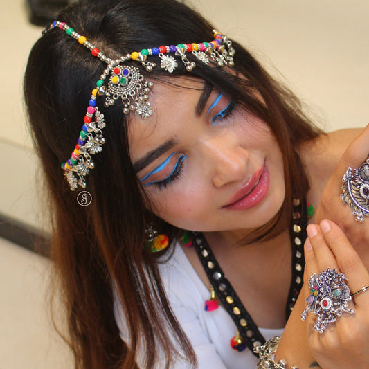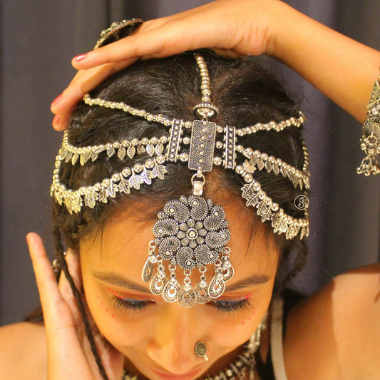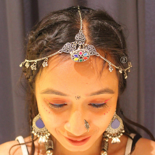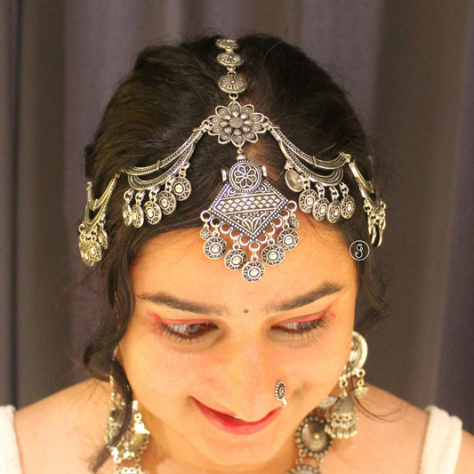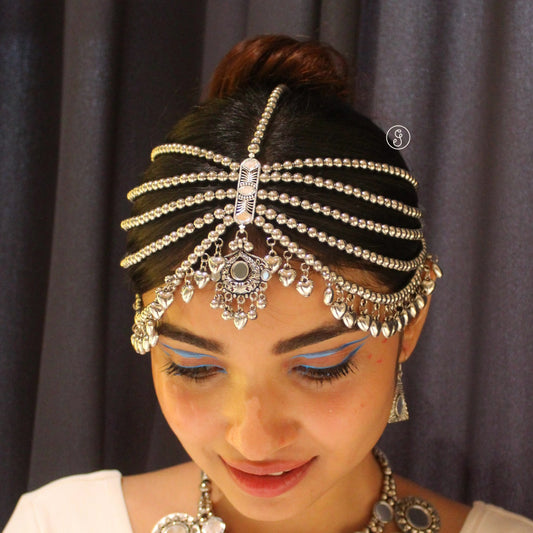 Oxidized Multi-Layered Damini Style Maang-Tika