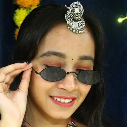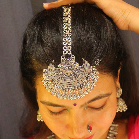 Elegant Damini Style Oxidised Silver Maang-Tika
