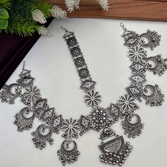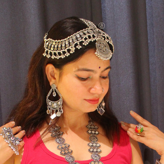 Beautiful Oxidised Silver Borla Style Damini Tika
