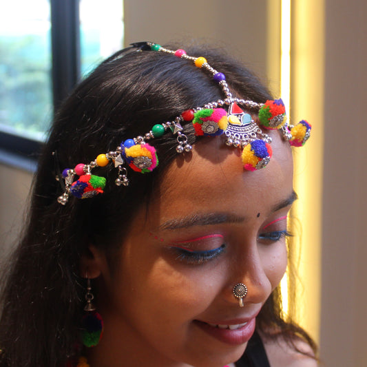 Beautiful Pom-Pom Work Oxidised Silver Tika