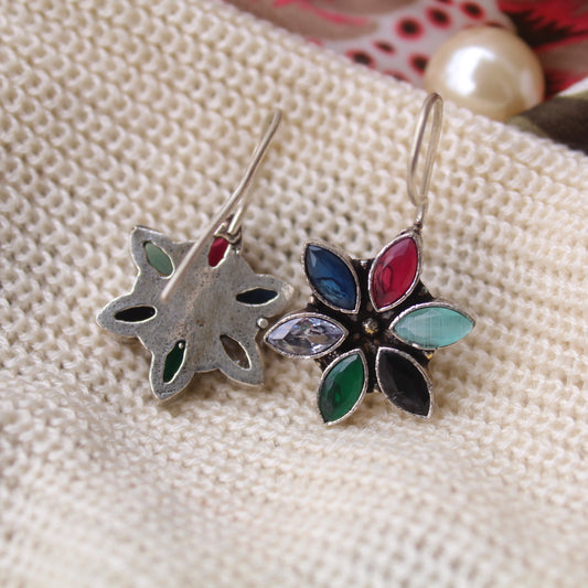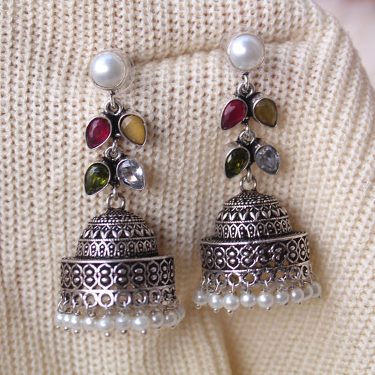 Multicoloured Stones Work Oxidised Jhumki