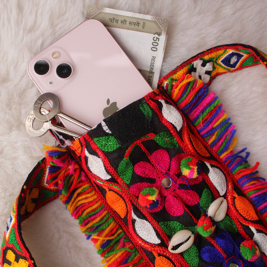 Colourful Kachhi Embroidered Waistbelt With Pouch