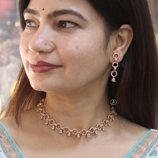 Rose Gold CZ Circle Design Necklace Set