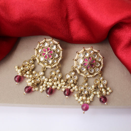 12 % OFFMagenta Bloom Kundan Ethnic Earrings