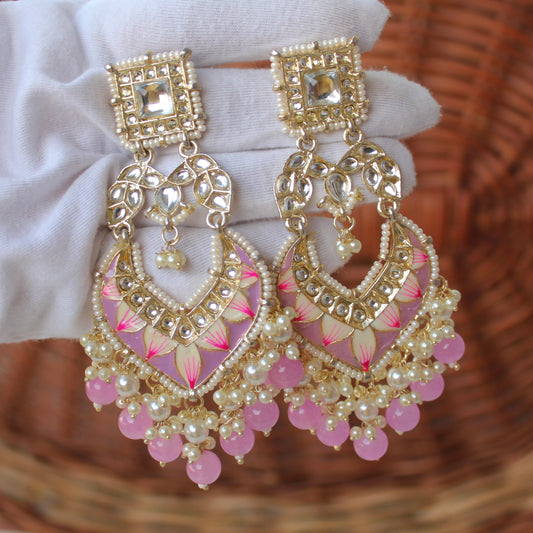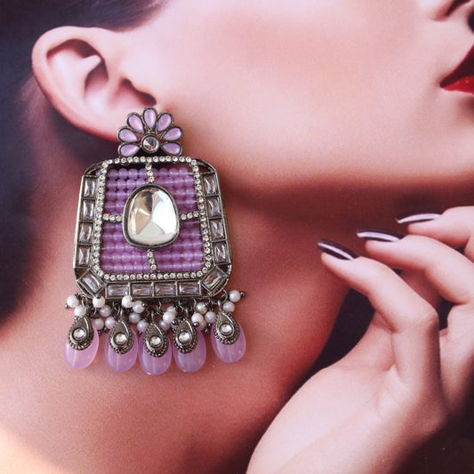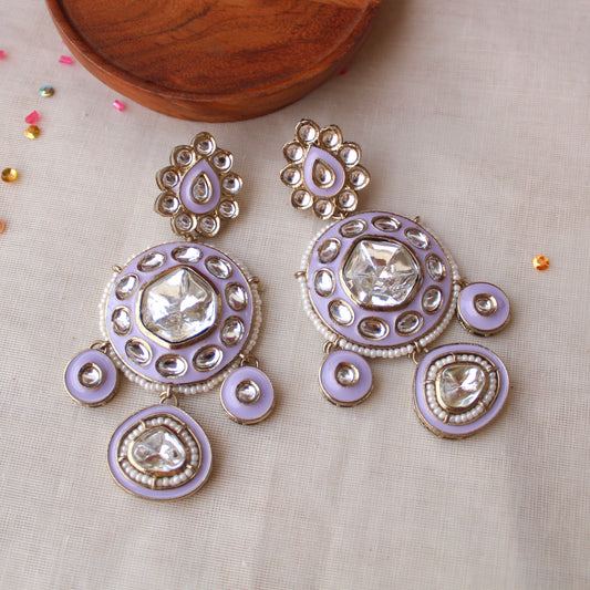 Lavender Uncut Kundan Work Statement Earrings