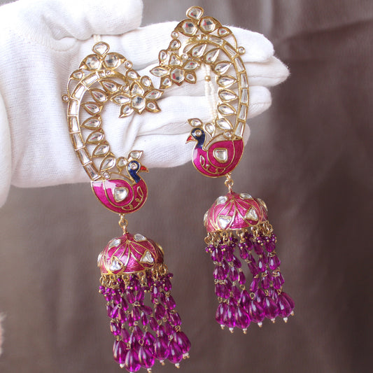 12 % OFFPurple Peacock Jhumki With Earcuff